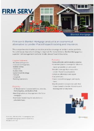 Firm Serv’s Blanket Mortgage product is an economical alternative to Lender-Placed hazard tracking and insurance.